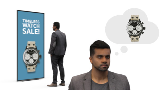 Digital signs enable retailers to boost revenue by personalizing content based on the anonymous demographics (age, gender) of nearby customers and other data as well (promotions, inventory, weather, etc.).